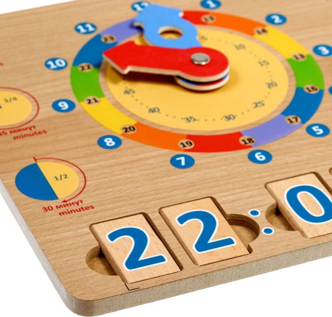 De houten speelplaat We leren klokkijken is een uitstekende didactische tool die natuurlijk leren door spel ondersteunt. Grote kleurrijke wijzers en duidelijk onderscheiden tijdssegmenten maken het voor kinderen makkelijker om uren, minuten en dagelijkse activiteiten op specifieke tijdstippen te begrijpen.