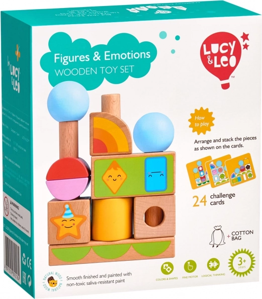 Lucy & Leo vormen en emoties – houten puzzel met voorbeeldkaarten