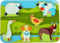 De houten puzzel met boerderijthema valt bij zowel meisjes als jongens in de smaak dankzij de diepe kleuren en het prettig gladde oppervlak. Elk van de 7 dieren heeft zijn eigen vorm en kan eenvoudig in de bijbehorende uitsparing worden gelegd. Door de grootte en dikte zijn de stukjes makkelijk vast te pakken en veilig voor zelfstandig spel.