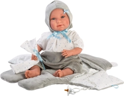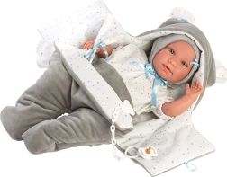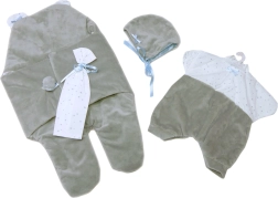 2-delige outfit voor een babypop, inclusief een snelslaapzakje voor het autostoeltje en een decoratief zakdoekje. Ideaal voor poppen van 40-42 cm.