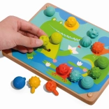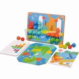 Deze speelset bevordert de fijne motoriek en het creatieve denken van kinderen dankzij 35 verschillend gestructureerde siliconen pinnetjes en kleurrijke dierenkaarten.