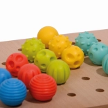 De set bevat 35 pinnetjes met verschillende oppervlaktestructuren, ideaal voor de sensorische ontwikkeling van kinderen.
