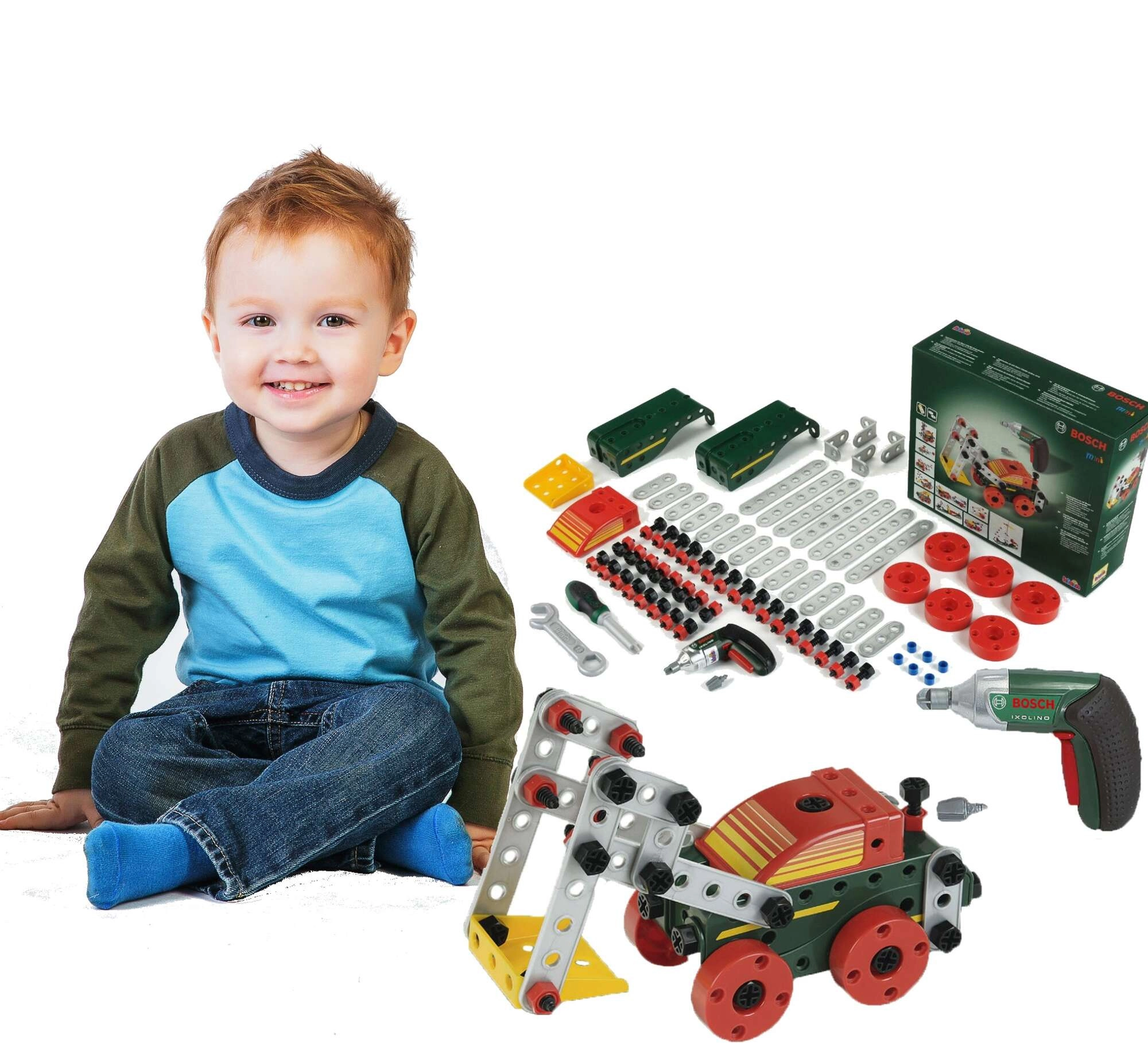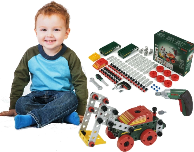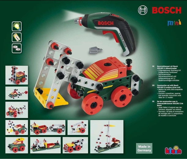 Deze rijk uitgeruste bouwset combineert creatief bouwen met realistisch spelen met echt gereedschap. Met de kinderspeelgoed accu-schroevendraaier BOSCH Ixolino kunnen kinderen schroeven vastdraaien, onderdelen verbinden en eigen constructies bouwen of de meegeleverde handleidingen volgen voor 11 voertuigmodellen.