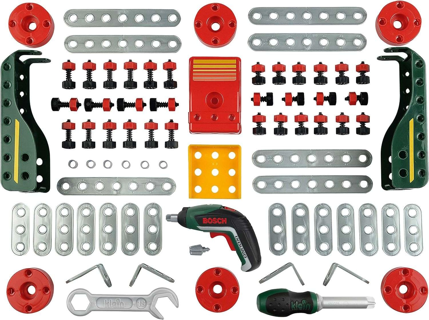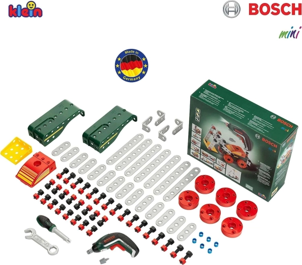 De kinderspeelgoed-bouwset uit de BOSCH mini-lijn van KLEIN biedt een realistische accu-schroevendraaier BOSCH Ixolino en in totaal 77 onderdelen voor creatief bouwen. Je bouwt tot 11 verschillende voertuigmodellen en ontwikkelt fijne motoriek, logisch denken en fantasie. Een geweldige keuze voor kleine doe-het-zelvers vanaf 3 jaar.