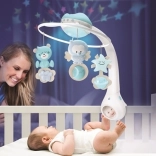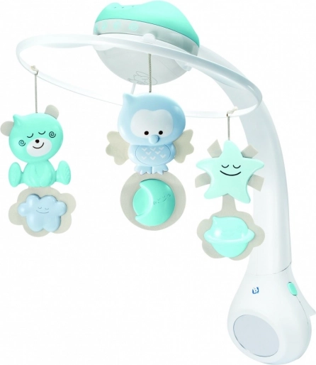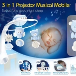 Deze veelzijdige mobiel groeit met je kind mee: vanaf de newbornfase als een mobiel met zacht licht en muziek (0–5 maanden), via een nachtlampje met muziek aan het ledikant (6–18 maanden), tot een los nachtlampje met muziek op het nachtkastje (18+ maanden). De projector toont sterretjes en zorgt voor een rustige sfeer om gemakkelijk in slaap te vallen.