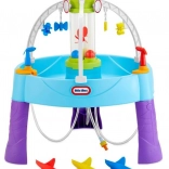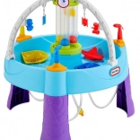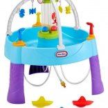 De tafel is uitgerust met verschillende elementen, zoals draaiende doelen en een watercilinder, die kinderen stimuleren tot dynamisch spel en de ontwikkeling van hun vaardigheden.