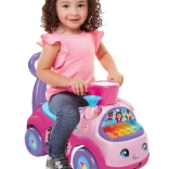 Voorop zit een toetsenbord met twee modi: het speelt 5 vrolijke marsmelodieën af of biedt vrije speelstand, zodat je kind zelf muziek kan maken. De achterbeugel biedt steun bij de eerste stapjes en onder het zadel bevindt zich een praktisch opbergvakje voor kleinigheden.