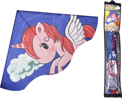 Delta-vlieger met eenhoornmotief is een geweldige keuze voor een plezierige dag in de buitenlucht. Dankzij de lichte nylonconstructie en de afmetingen van 135 x 65 cm is hij eenvoudig te bedienen en stabiel, zelfs voor beginners.