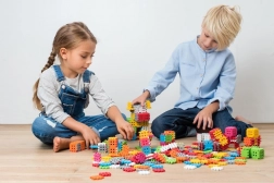 Kinderen ontwikkelen fijne motoriek en ruimtelijk inzicht tijdens het spelen.