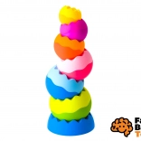 Een geslaagde combinatie van aantrekkelijk design die de fantasie en creativiteit stimuleert. Door vormen van verschillende groottes te stapelen worden kleine spieren geactiveerd en wordt de fijne motoriek geoefend. Het ondersteunt de juiste ontwikkeling van oog-handcoördinatie en een gezonde psychomotorische ontwikkeling. De stapeltoren heeft 7 delen die je op verschillende manieren kunt draaien, uit elkaar halen en stapelen.
