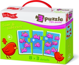Met puzzeltrio's die uit afbeeldingen bestaan, leren kinderen gemakkelijk de basisconcepten van wiskunde in een speelse omgeving. Deze set is ideaal voor de ontwikkeling van logisch denken en cognitieve vaardigheden.