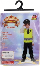 De set bevat een overhemd met stropdas, een politievest en een pet, zodat je eenvoudig een complete look creëert. Overige accessoires, zoals donkere broek of schoenen, kun je naar eigen wens toevoegen.