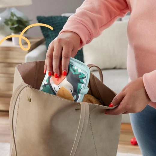 Pas het paneel eenvoudig aan de activiteit aan: leg het plat voor tummy time, zet het in harmonikavorm voor spel in zit, of vouw het tot een staande kubus voor stabiel speelplezier. Na afloop vouw je het simpelweg plat op voor in de tas; de praktische lus maakt bevestiging aan de kinderwagen mogelijk voor plezier onderweg.