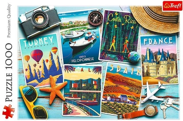 Geniet van ontspanning met een hoogwaardige puzzel van 1000 stukjes met het motief van vakantiekaarten. Na het leggen ontstaat een afbeelding van 683 × 480 mm. De puzzel is gemaakt van materialen van hoge kwaliteit, met gekalanderd, lichtreflecterend papier voor comfortabeler puzzelen. Gemaakt in Polen van milieuvriendelijke materialen.