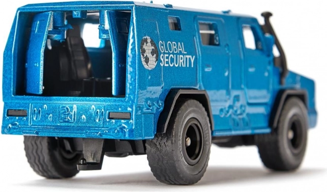 Metalen beveiligd transport Global Security – blauw gepantserd voertuig