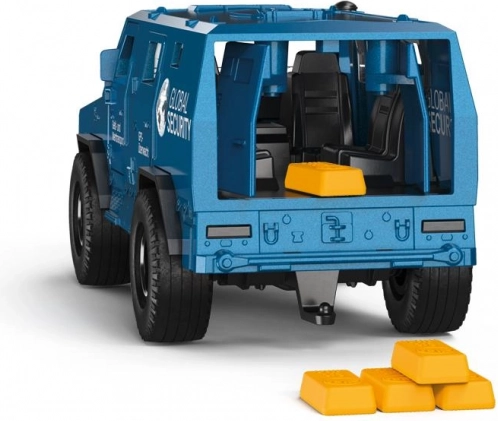 Het model stimuleert fantasie en rollenspel – van bankbegeleiding tot geheime missies. Glanzende lak, GLOBAL SECURITY-bedrukking en realistische proporties maken dit voertuig aantrekkelijk om mee te spelen én om neer te zetten. In de verpakking kunnen thematische accessoires zitten, zoals “goudstaven”, voor een nog betere speelervaring.