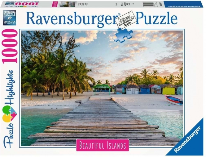 Ontdek de schoonheid van de Malediven met de Ravensburger puzzel van 1000 stukjes, met levendige kleuren, precieuze stans en perfect passend puzzelstukjes. Ideaal voor ontspanning en gezellig samenzijn vanaf 14 jaar.