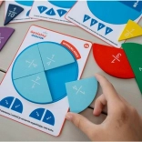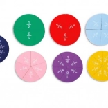 De set bevat houten elementen die de breuken 1/2, 1/3, 1/4, 1/5, 1/6, 1/8, 1/10 voorstellen; de set wordt aangevuld met bijpassende werkkaarten.
