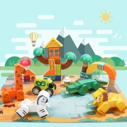 Ga mee op safari-avontuur en creëer je eigen speelpark. De set bevat een puzzel om het park met vijver en struiken te bouwen.
