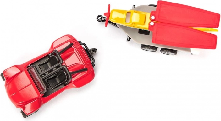 Deze set is ideaal voor jonge piloten en autoliefhebbers. De rode auto met metalen carrosserie en sportieve rubberen banden biedt realistische details die creatief spel stimuleren. Het vliegtuig heeft opvouwbare vleugels en levendige kleuren die de verbeelding prikkelen.