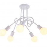 Stijlvolle plafondlamp met 5 lichtpunten en fitting E27 die je interieur een moderne loftuitstraling en veel licht geeft. De metalen constructie is duurzaam, eenvoudig te monteren en compatibel met standaard- en decoratieve lampen. Aansluiting op een dubbele schakelaar maakt het makkelijk om de lichtintensiteit te regelen.