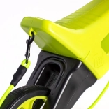 Zachte banden zorgen voor een stille rit zonder sporen op de vloer, raken niet lek en hoeven niet te worden opgepompt. De stuurvergrendeling voorkomt overstuuren en beschermt het buikje van het kind; superzachte handvatten met verbrede uiteinden beschermen de handjes. De hoogte-instelling van de assen in 2 posities past de loopfiets aan zowel kleinere als grotere kinderen aan.