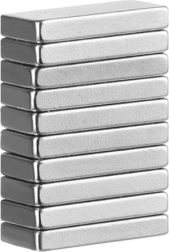 Dankzij de combinatie van neodymium, ijzer en boor bereiken de magneten een stabiele magnetisatie en een lange levensduur. Ga voorzichtig met ze om: de sterke aantrekkingskracht kan beknelling veroorzaken of het brosse materiaal van de magneet beschadigen. Niet geschikt voor kinderen.