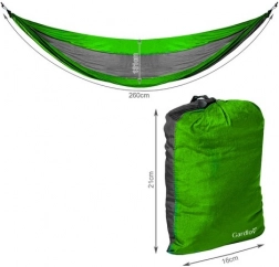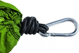 De hangmat is uitgerust met een praktische tas, die het draagbaar maakt - de opgevouwen hangmat neemt minimale ruimte in beslag en past zelfs in een kleine rugzak. Na het uitvouwen kan de tas worden gebruikt als vakje voor drankjes, telefoon of krant.