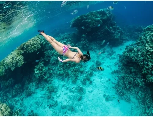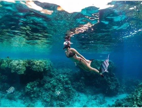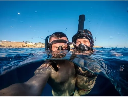 Het volgelaatsnorkelmasker combineert comfort met uitstekend zicht. Het ontwerp met een grote, gebogen vizier biedt een panoramisch 180° gezichtsveld, zodat je geen enkel detail mist. Het innovatieve luchtstroomsysteem laat je volledig natuurlijk ademen via neus en mond, terwijl de Anti-Fog-technologie beslaan voorkomt, zelfs bij langdurig gebruik.