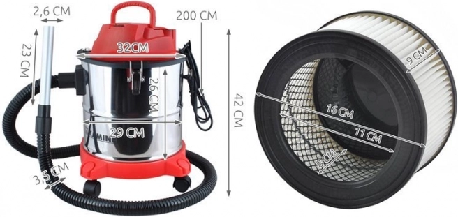 De asstofzuiger Kaminer is uitgerust met een krachtige 1200W motor, die snelle en gemakkelijke reiniging van zelfs de moeilijkst bereikbare plekken mogelijk maakt. Het dubbels filtratiesysteem voorkomt het ontsnappen van stof en beschermt de motor.