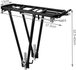 Duurzaamheid en stabiliteit: De drager is gemaakt van duurzaam aluminium, wat zorgt voor een lange levensduur en stabiliteit bij het vervoeren van voorwerpen. Het maximale draagvermogen van dit model is tot 35 kg, wat het mogelijk maakt om volledig beladen fietstassen comfortabel te vervoeren.