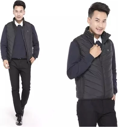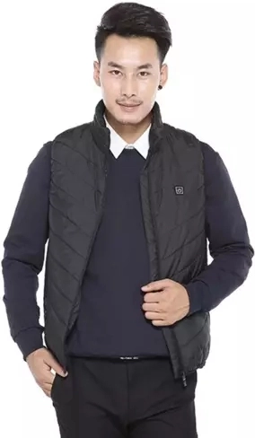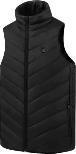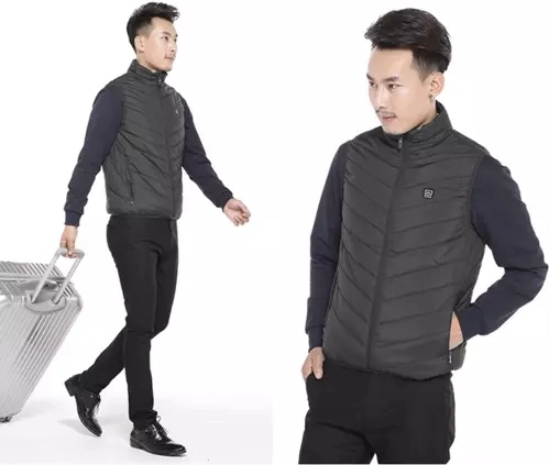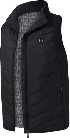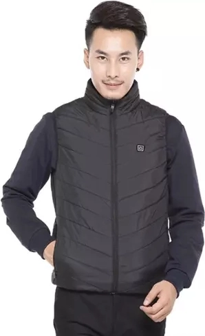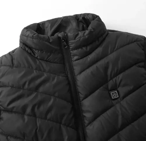 De bodywarmer kan via USB op een powerbank worden aangesloten voor directe verwarming, met drie intensiteitsniveaus in negen zones over de romp.