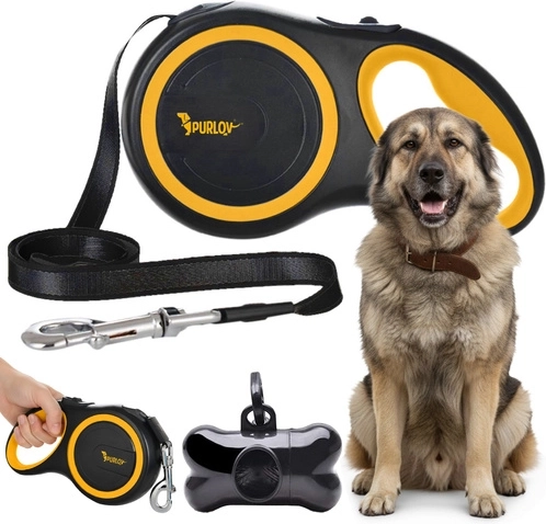 Praktische zelfoprollende riem met een lengte tot 8 m voor honden tot 50 kg voor comfortabel en veilig uitlaten. Voorzien van een ergonomische antisliphandgreep, een betrouwbare rem- en vergrendelsysteem bediend met de duim en een stevige bandlijn met metalen karabijnhaak voor zekere bevestiging aan halsband of tuig.