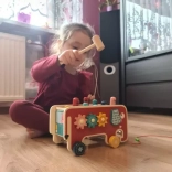 Dankzij de mogelijkheden om te draaien, trekken en slaan biedt het speelgoed gevarieerde speelmogelijkheden en leren.