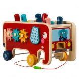 Dit speelgoed ondersteunt de ontwikkeling van de fijne motoriek en concentratie dankzij interactieve elementen zoals hamertjes en tandwielen.