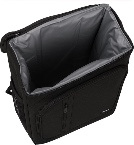 De doordachte indeling van de vakken biedt ruimte voor bestek, borden en kleine spullen. Aan de band is een flesopener geïntegreerd, handig bij elk outdooravontuur. De voering en volledige verstelbaarheid van de schouderbanden zorgen voor comfort, zelfs bij volle belading.