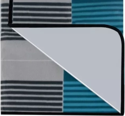 Dit picknickkleed is gemaakt van flanelstof en heeft aan de onderzijde een isolerende aluminiumlaag. Het is zacht aan de aanraking en voorkomt het doordringen van vocht, waardoor het ideaal is voor picknicks of ontspanning in de tuin/aan het strand.