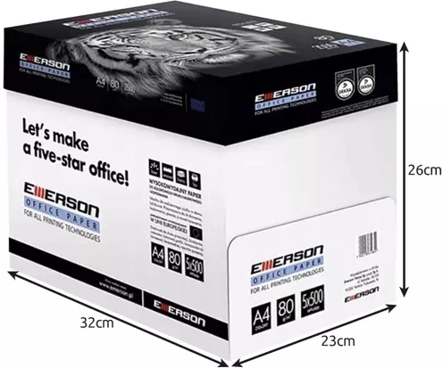 De doos bevat vijf riemen van 500 vellen – in totaal 2500 A4-vellen. Praktisch voor kantoren, scholen en thuisvoorraad.