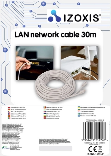 Veelzijdige en veilige Izoxis LAN-kabel van 30 meter biedt een snelle en betrouwbare verbinding in zowel thuis- als kantoornetwerken. Het duurzame ontwerp garandeert een veilige en stabiele gegevensoverdracht.