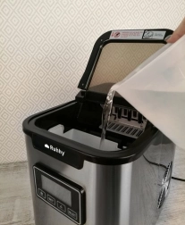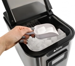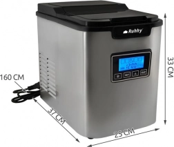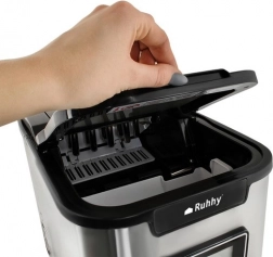 IJsmachine Ruhhy is de perfecte oplossing voor het bereiden van ijskoude drankjes thuis en op kantoor. Met een hoge capaciteit van tot 12 kg ijs per dag en de mogelijkheid om drie verschillende groottes ijsblokjes (S/M/L) te produceren, kunt u altijd de gewenste blokjes ijs hebben. Vul de tank eenvoudig met water, kies de grootte van de blokjes en geniet binnen enkele minuten van verfrissend ijs.