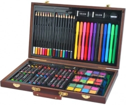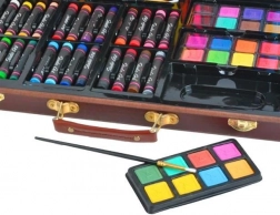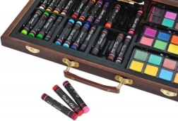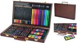 De set bevat 24 oliepastels, 16 kleurpotloden, 24 aquarelkleuren, 12 stiften, 2 penselen, een puntenslijper, 2 gummen, een tekenblok en een kleurboek – geweldig voor kinderen vanaf 3 jaar en volwassenen. Materialen van hoge kwaliteit en een rijk kleurenpalet maken het mogelijk om originele en creatieve werken te maken, thuis, op school en in de buitenlucht.