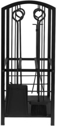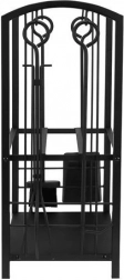 De complete 4-in-1 uitrusting omvat een pook voor gelijkmatig verdelen van gloeiend hout of kolen, een tang voor veilig hanteren van houtblokken, een schep en een handveger voor een schone haard. Het gereedschap heeft praktische haken voor overzichtelijk ophangen aan de standaard.