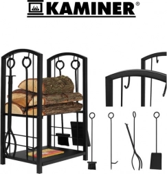 De elegante houtstandaard van KAMINER combineert opbergruimte met een complete set openhaardgereedschap 4-in-1 – tang, schep, handveger en pook. De robuuste stalen constructie met matzwarte afwerking is stabiel en duurzaam en past perfect in elk interieur. Dankzij twee leggers houd je het bij de haard netjes en heb je alles binnen handbereik.