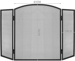 Elegant, driedelig haardscherm met fijn stalen gaas dat de vloer en omgeving betrouwbaar beschermt tegen hete vonken en smeulende deeltjes. Met afmetingen van 118 × 76 cm biedt het een hoog veiligheidsniveau, de matte zwarte afwerking past perfect in het interieur en de opvouwbare constructie maakt vrije positionering mogelijk afhankelijk van de breedte en vorm van de haard. Het duurzame stalen gaas laat warmte en zicht op de vlammen door, maar houdt vuil en hitte tegen.