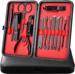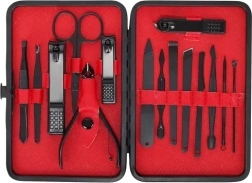- VOLLEDIGE SET VOOR ELKE SITUATIE -a0de set bestaat uit 16 onderdelen. Etui + 15 gereedschappen; voor de verzorging van handen, voeten en gezicht. Hieronder vindt u een gedetailleerde lijst van gereedschappen.