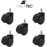 De wieltjes zijn bovendien stil en slipvrij, wat volledige controle over richting en intensiteit van de beweging mogelijk maakt. De set bevat 5 stuks, geschikt voor volledige vervanging op elke kantoorstoel. Montage is eenvoudig en snel met een ‘klik’.