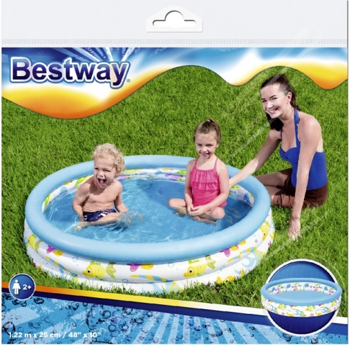 Het opblaasbare kinderzwembad BESTWAY met afmetingen 122 × 25 cm is een uitstekende keuze voor de eerste waterpret. De transparante wanden met een vrolijk zeedierenmotief prikkelen de fantasie en nodigen kinderen uit om veilig buiten te spelen. Dankzij het zachte maar stevige PVC is het zwembad bestand tegen scheuren en klaar voor meerdere seizoenen.