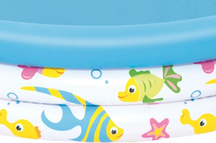 Het lichte en veilige opblaasbare BESTWAY-zwembad is ideaal voor kleine kinderen tijdens warme dagen in de tuin of op vakantie. Het biedt een capaciteit van 140 liter, een driekamersconstructie voor stabiliteit en duurzaam PVC-materiaal. De kleurrijke print met zeedieren en het veiligheidsventiel zorgen voor een ontspannen en leuke verfrissing.