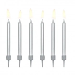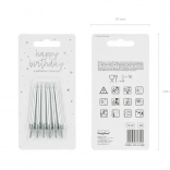 Vier in stijl met deze gemetalliseerde zilveren kaarsen, de ideale toevoeging voor elke taart. Hun elegante uitstraling en universele kleur passen bij elke decoratie en gelegenheid.