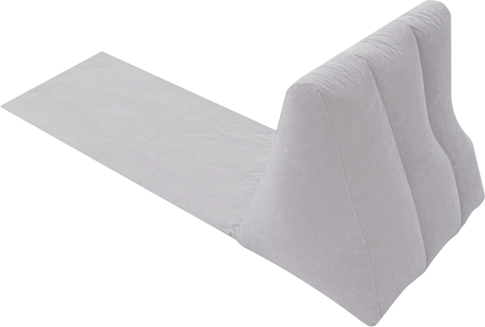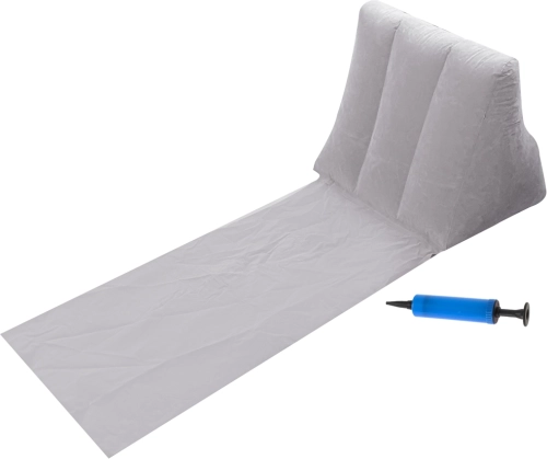 De opblaasbare wigvormige rugleuning verlicht rug en nek – ideaal om te lezen, ontspannen of zonnen.